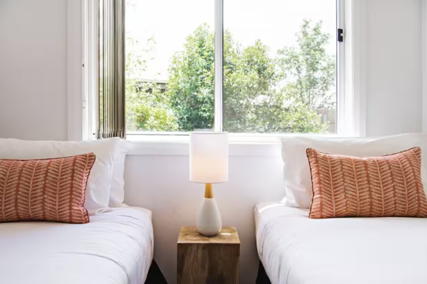 Our freshly renovated 2-bedroom, 1-bathroom apartment with full kitchen combines modern design with warm, welcoming charm. Featuring spacious open plan living, modern elegant finishes, and luxurious King-size beds (which can be split into Singles upon request), 5 One A The Laneway offers a relaxed, indulgent retreat.